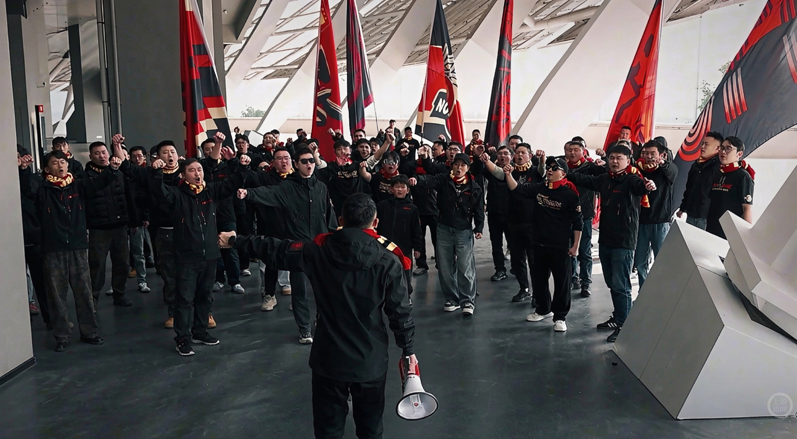 “队长,队长,英勇的向余望;带球奔袭,射门破网,共铸辉煌斗志昂!”在龙兴足球场南看台候场区域,记者看到了50多名正在排练的重庆球迷,他们敲着鼓、挥舞着双手,唱起了原创的球迷助威歌曲《英勇的向余望》。这首歌不仅在U23亚洲杯成功出圈,还在重庆铜梁龙泰国拉练期间,由新帅刘建业起头,其他队友合唱欢迎队长向余望归队。